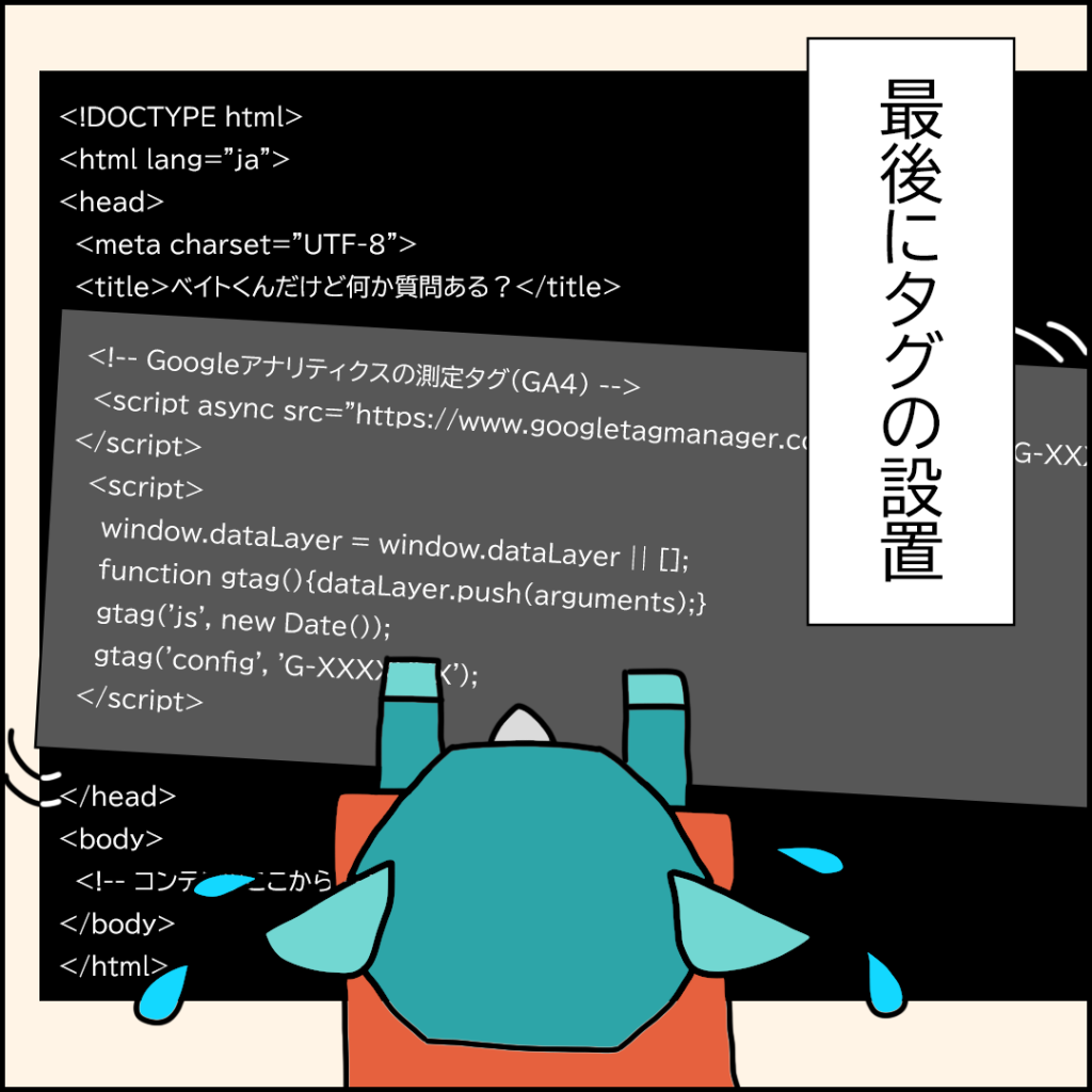 この段階で、Googleアナリティクスによるデータ収集の準備は整いましたが、実際にデータを取得するには、サイト側へのタグ設置が必要です。次のセクションでは、その具体的な設定方法について詳しく解説していきます。