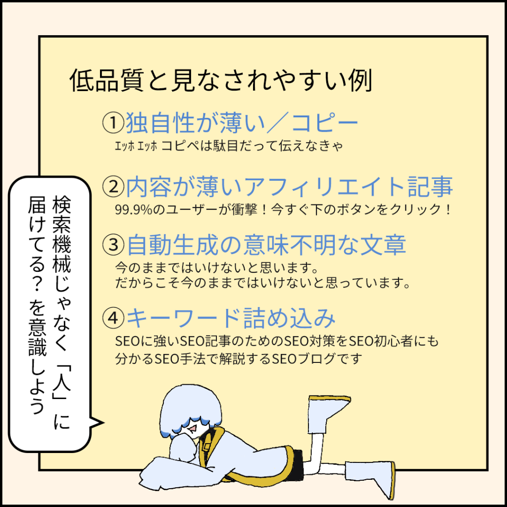 じゃあまずは「低品質と見なされやすい例」から見ていこうか