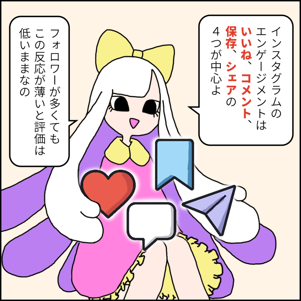 エンゲージメントが高い投稿はInstagramのアルゴリズムが“人気がある!”と判断して、より多くの人に表示されるのよ