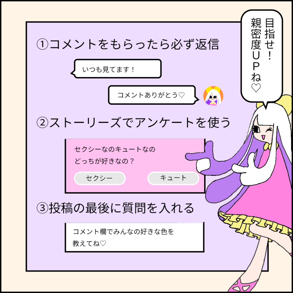 だからまずはフォロワーとの”会話”を増やすことを目指すといいわ