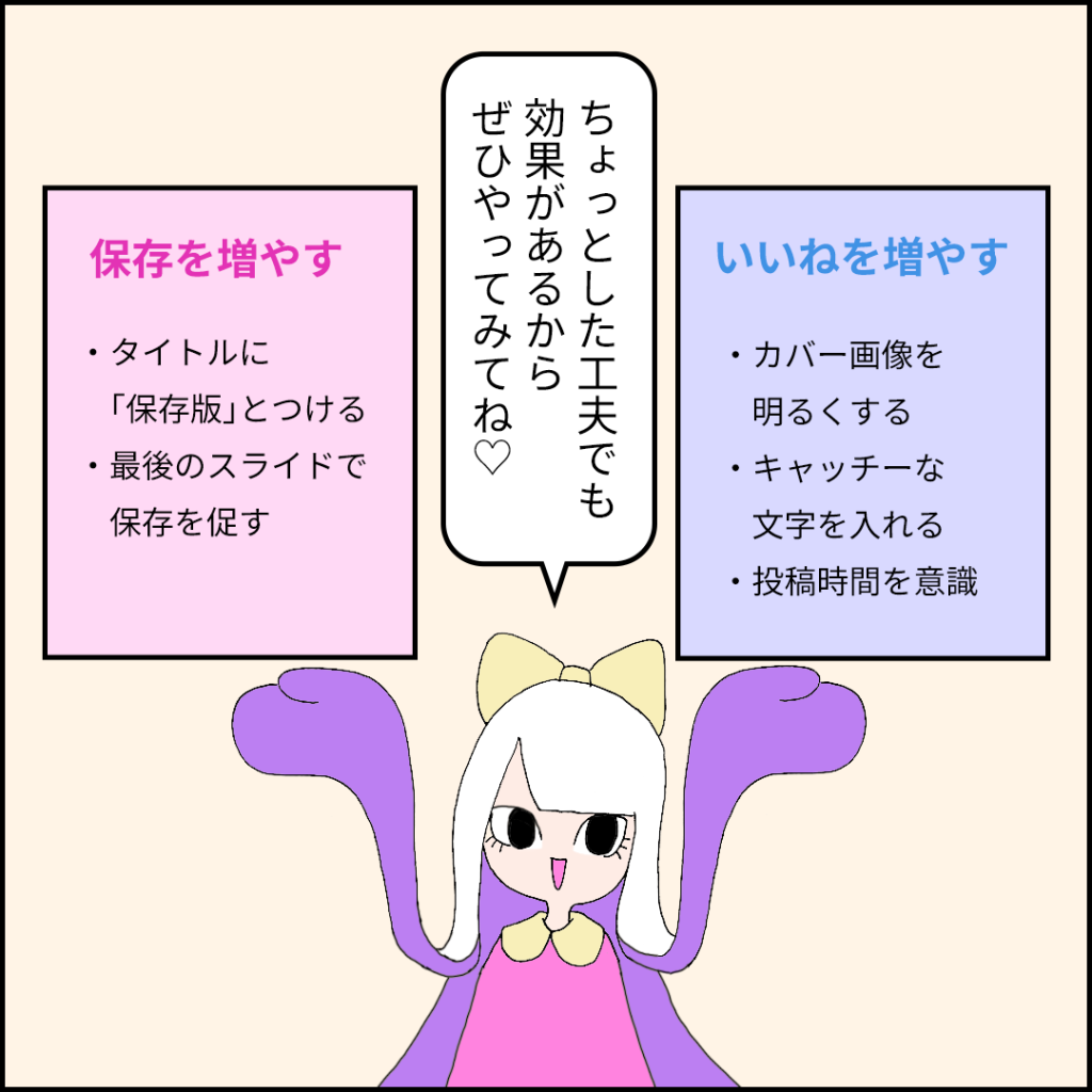 「会話」の次は「いいね」と「保存」を取りに行くわよ