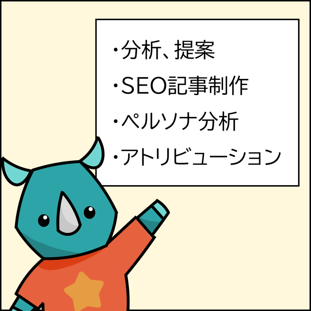 「分析・提案」に「SEO記事執筆」、「ペルソナ分析」に「アトリビューション分析」まで…!!