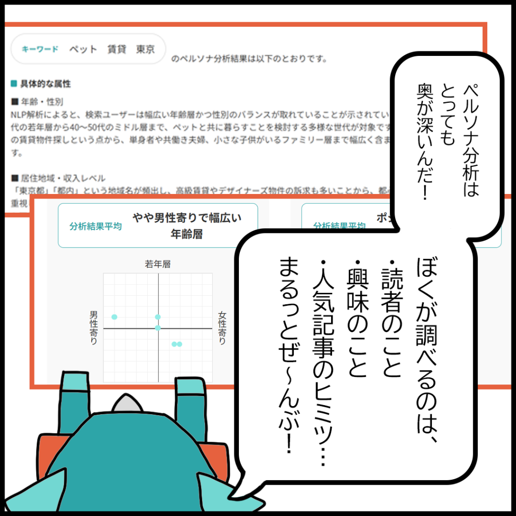 ”ペルソナ分析”だよ! これもぼくの仕事のひとつ!