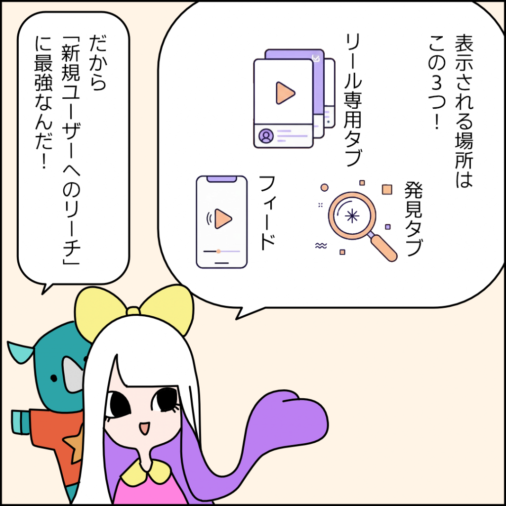 リールって、フォロワー以外の人にもたくさん表示されるのよ