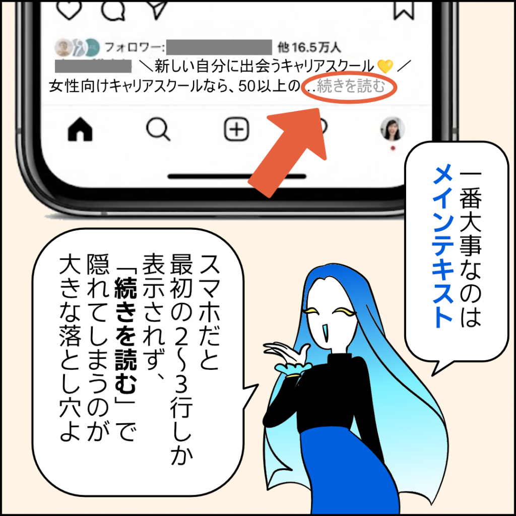 メインテキストは、Facebookなら画像の上、Instagramなら画像の下に表示されるよ