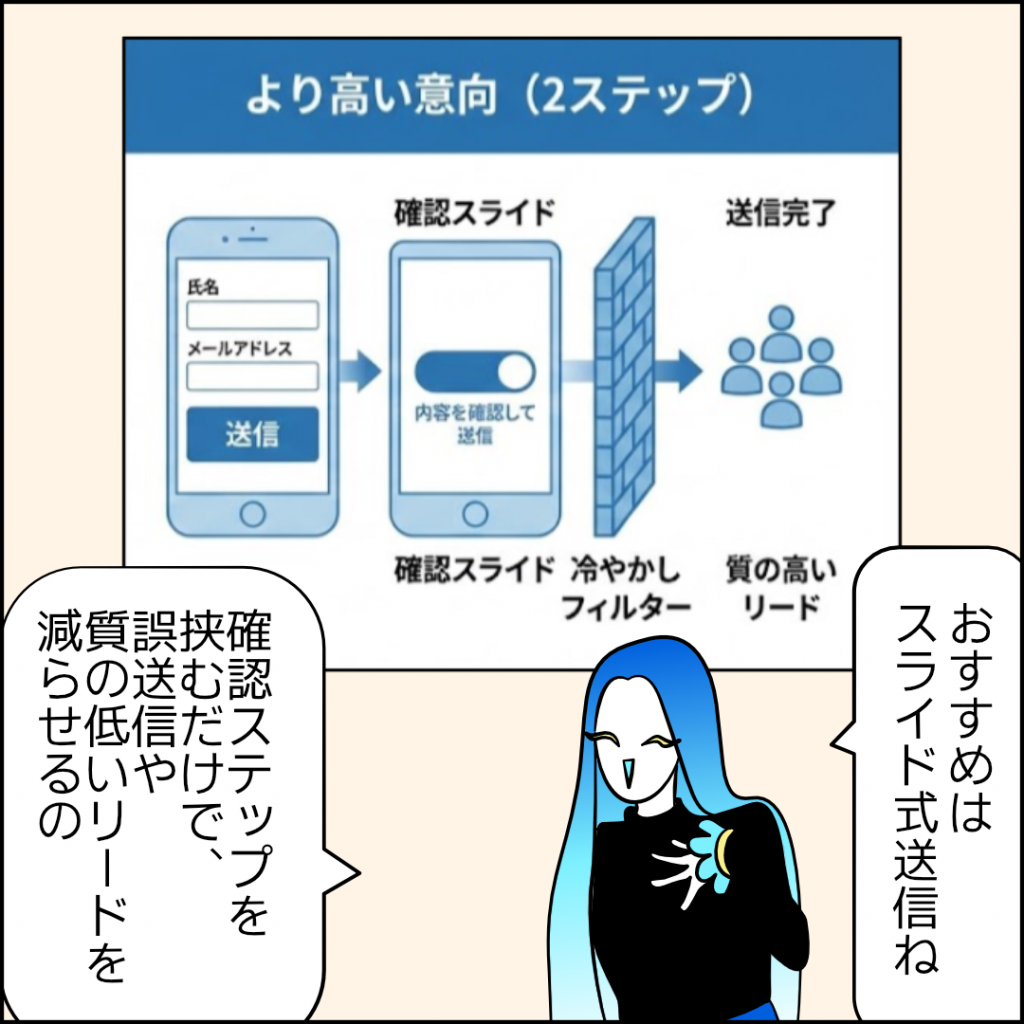 入力が簡単すぎるがゆえに、「なんとなくタップした」「よく考えずに送った」という“温度の低いリード”が混ざりやすくなります。ただし、これは設計次第でかなり防げます。
