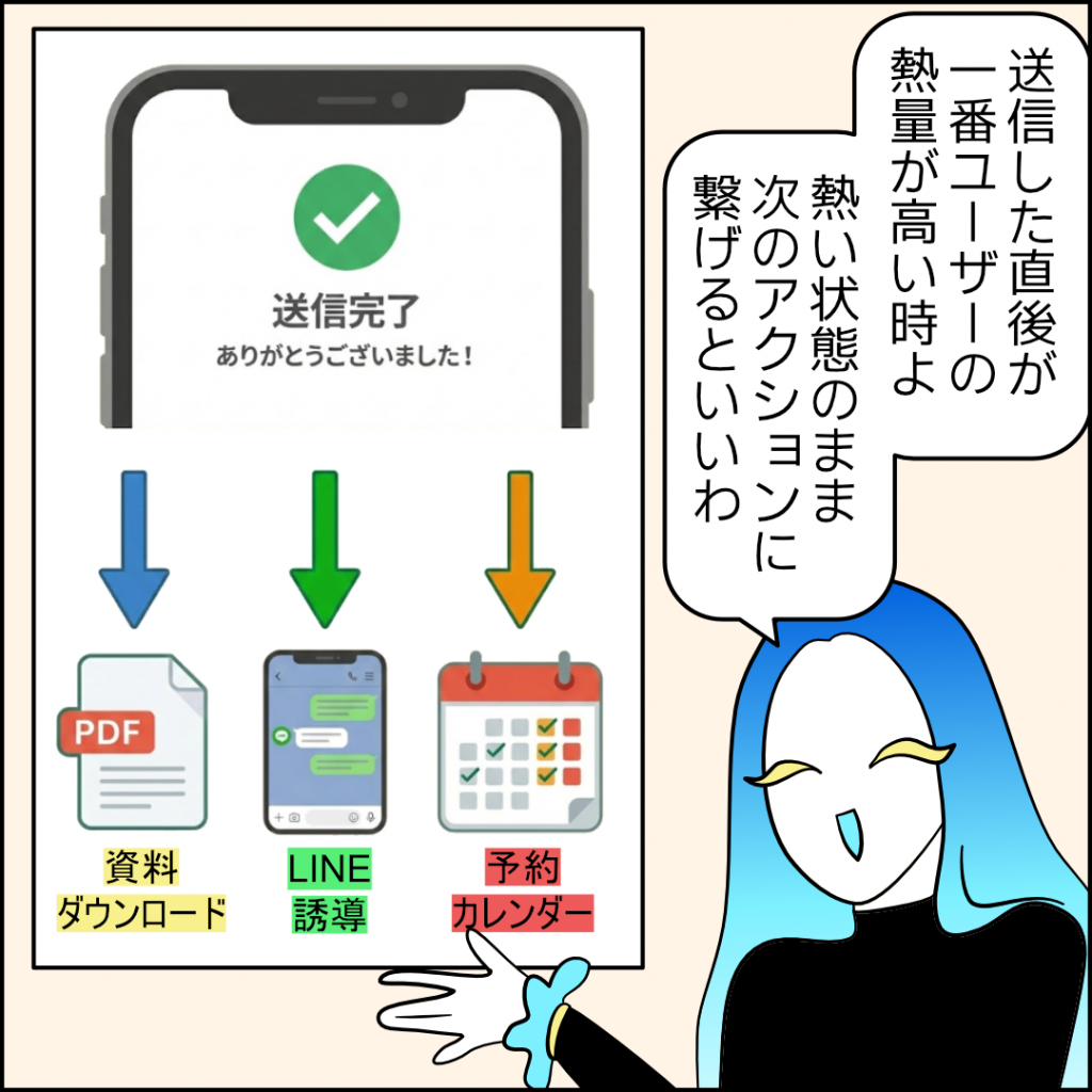 送信後の完了画面(サンクスページ)は、次のアクションにつなげる最大のチャンスです。