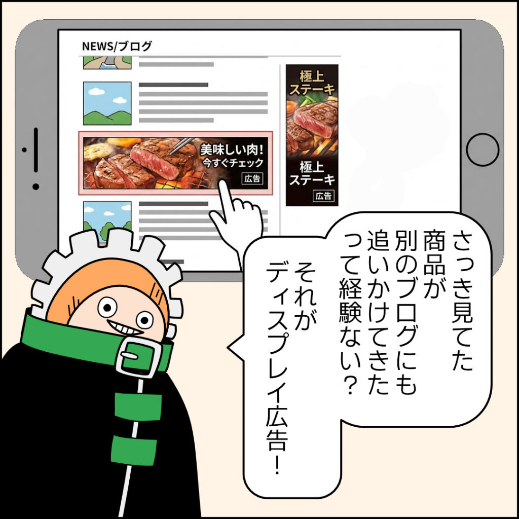 ニュースサイトやブログの隅にある画像広告のことな。通称、バナー広告!