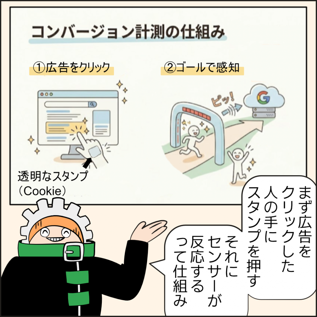 そう!「ピッ!1件獲得!」って感じでGoogleに報告がいくってこと