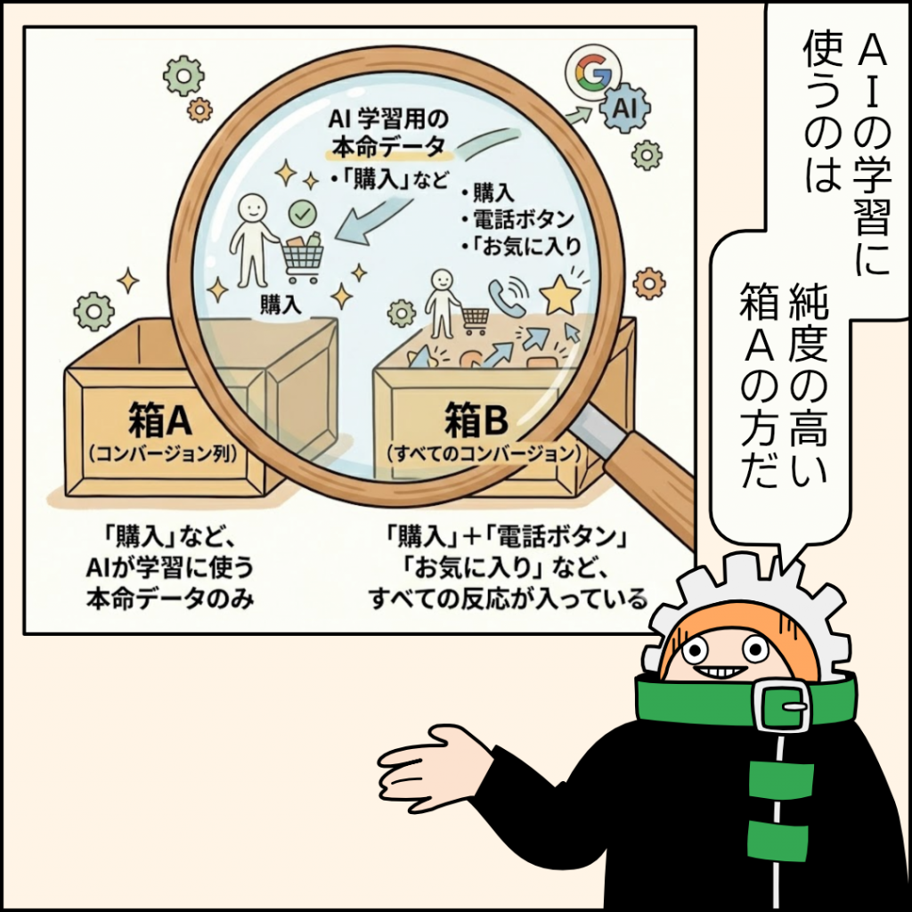初心者はまずコンバージョン列だけを見て、AIに何を最適化させているかを確認するのが近道だな