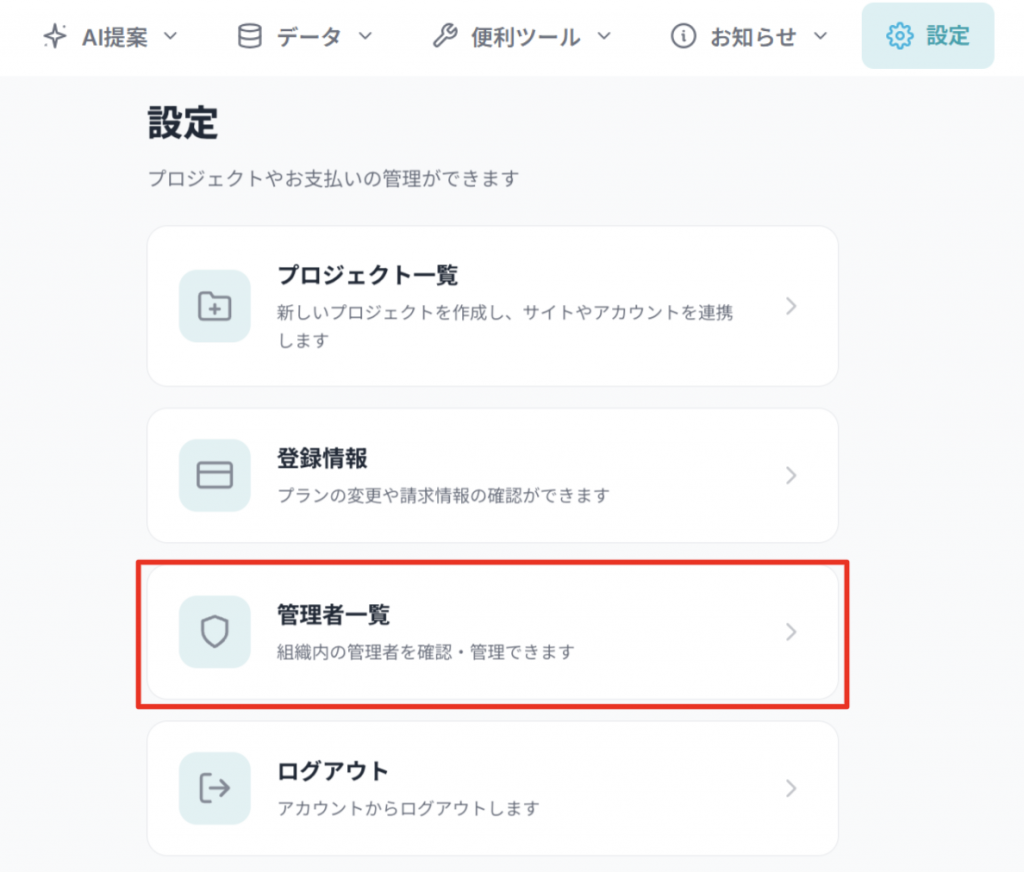 ※本操作は「オーナー権限」を持つユーザーのみ可能です。「メンバー権限」のユーザーは設定画面にアクセスできませんのでご注意ください。