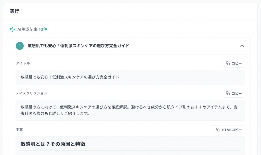 実行では、施策実行内容を確認できます。主にこの実行の内容をもとに、対応を進めてください。