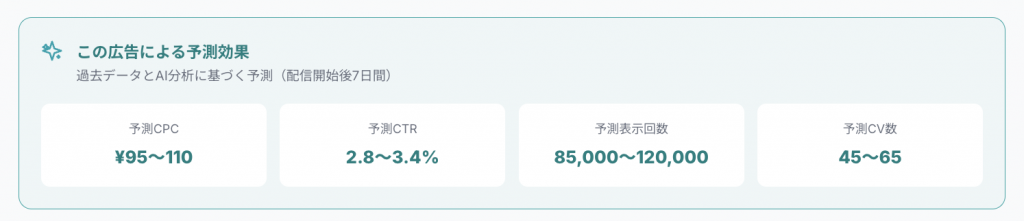 本施策実行による改善予測が確認できます。社内のKPI設定などに活用いただけます。