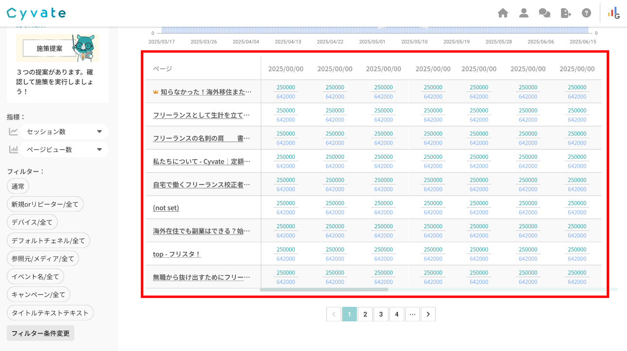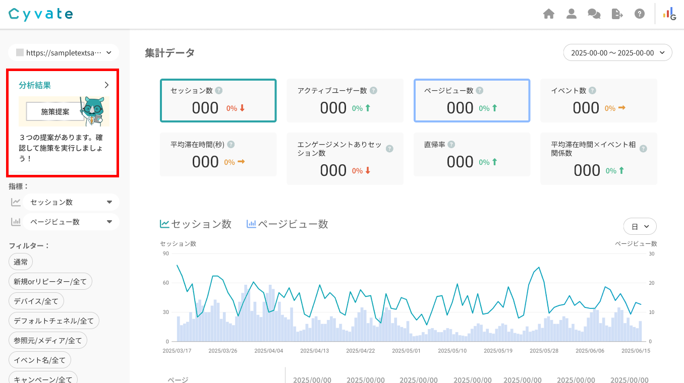 サイドバーの「分析結果」をクリックしても「施策提案」画面に遷移します。