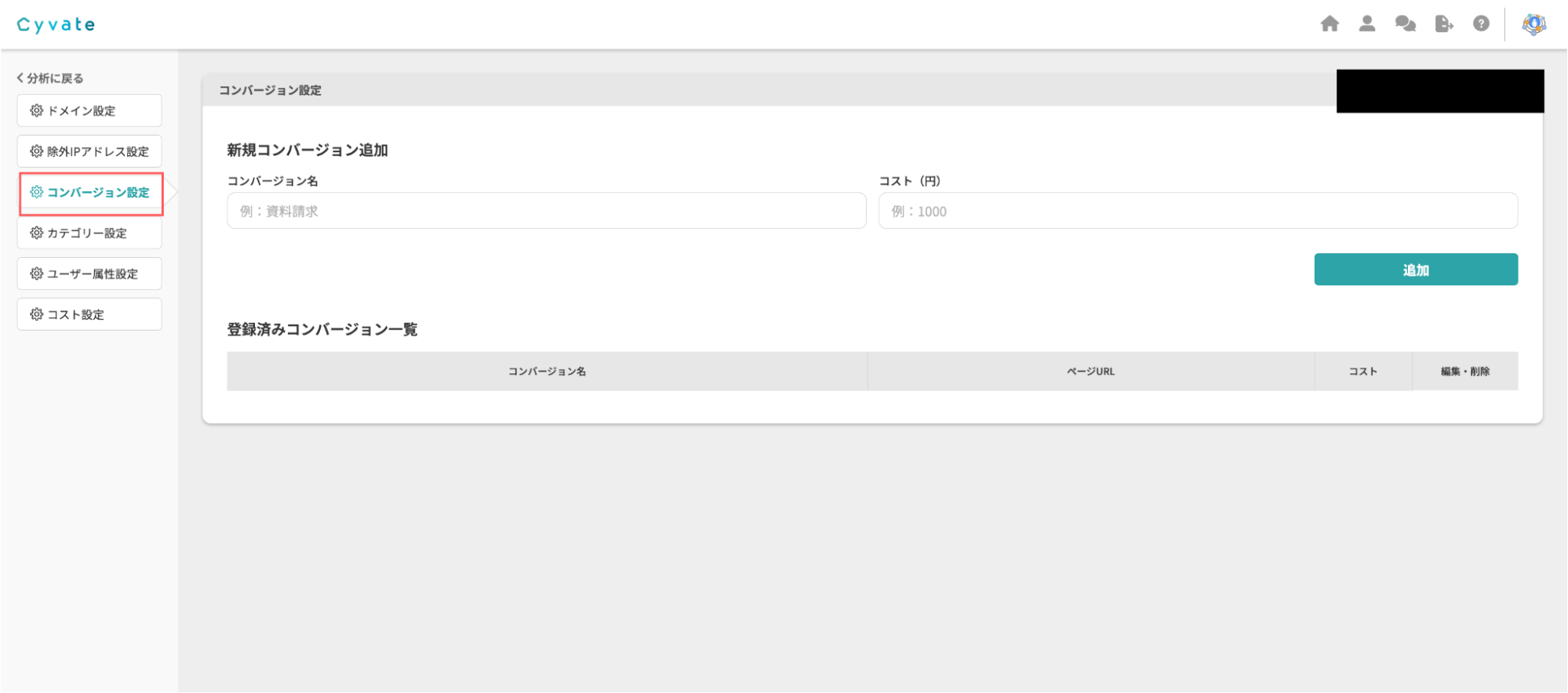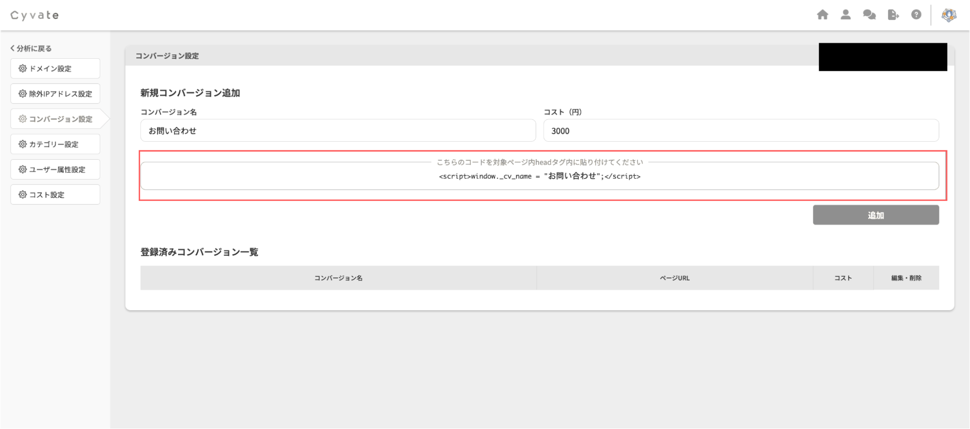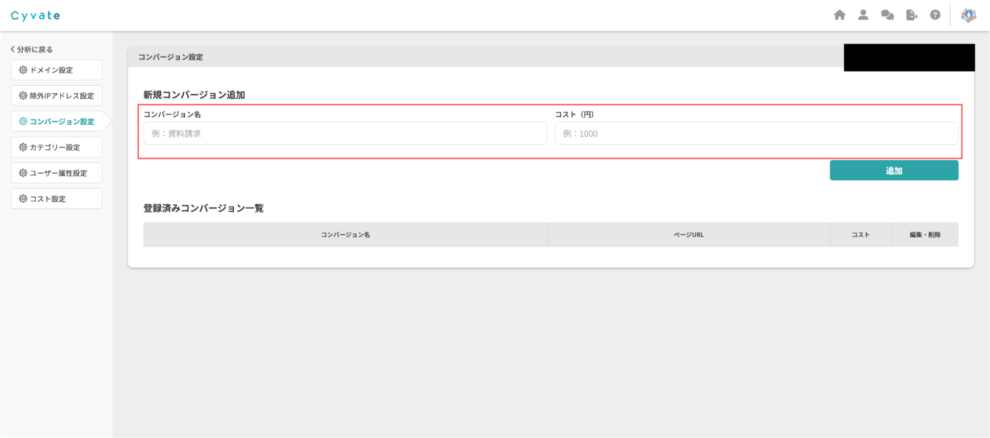 「コスト」にはコンバージョンが発生するのにかかるコストを入力してください。
