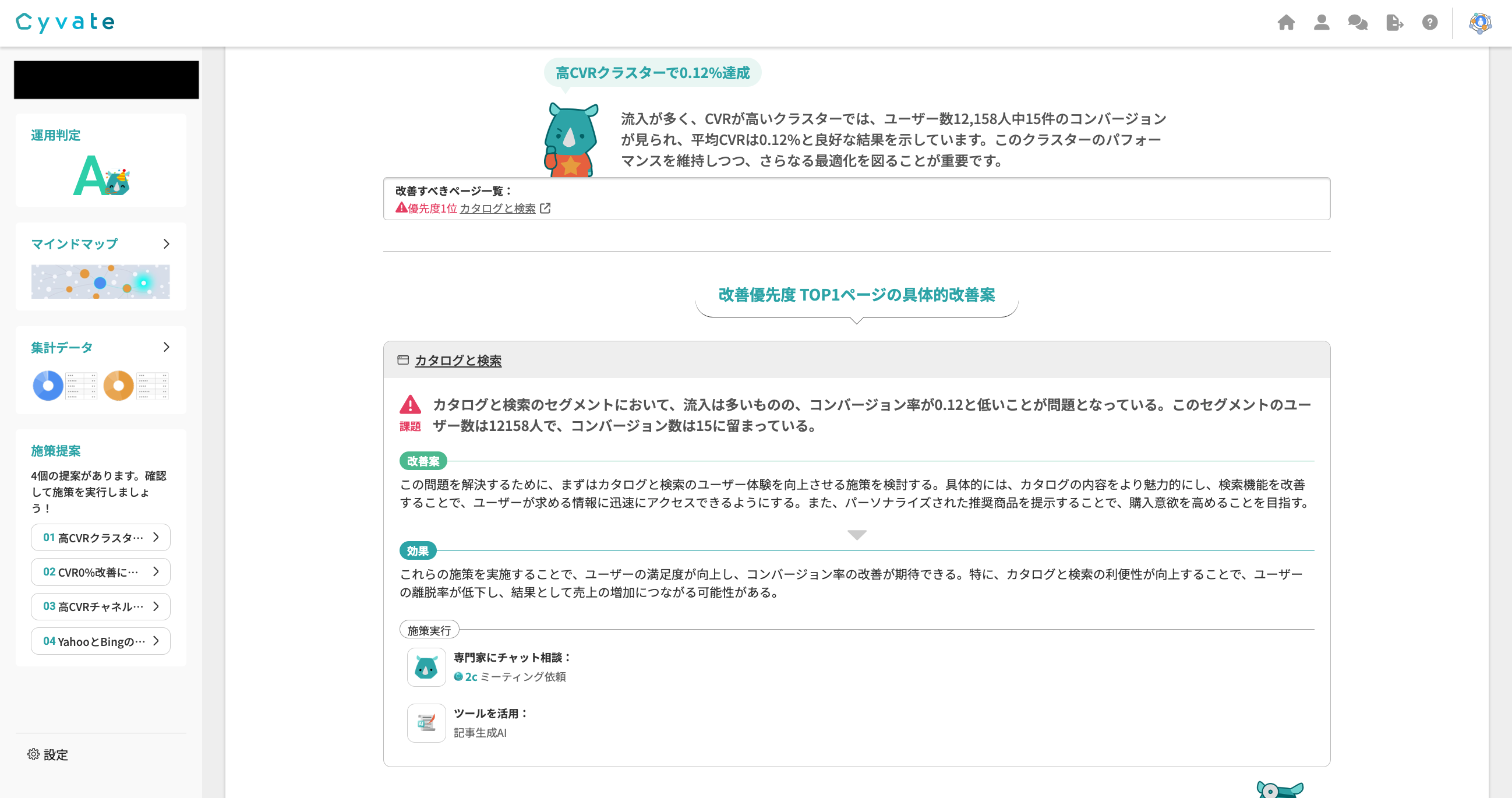 となっております。実際に取得したアクセスログをもとにAIが具体的な提案を出力します。