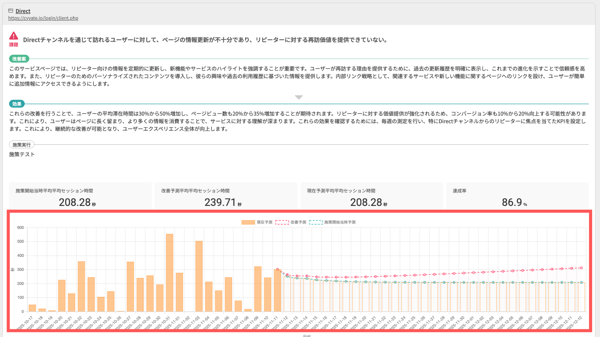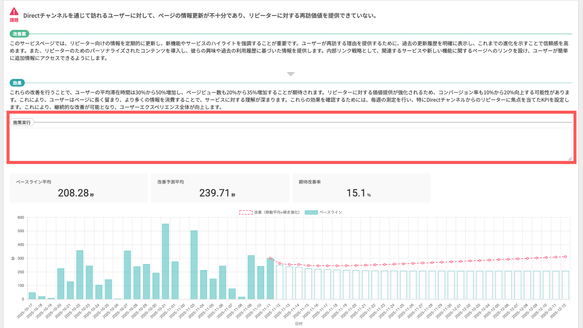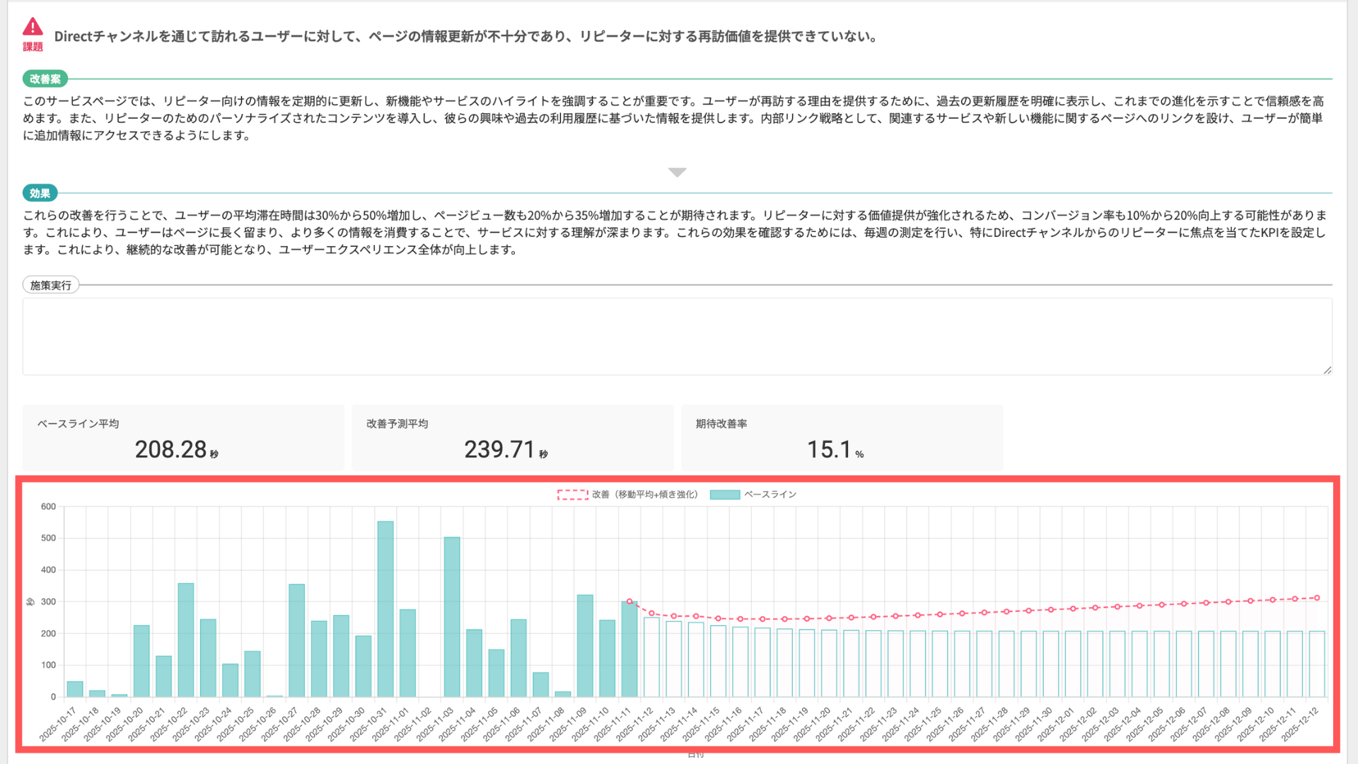 施策実施時と未実施時の予測により、「この期間でCV+○件なら現実的」といった判断が可能に。
